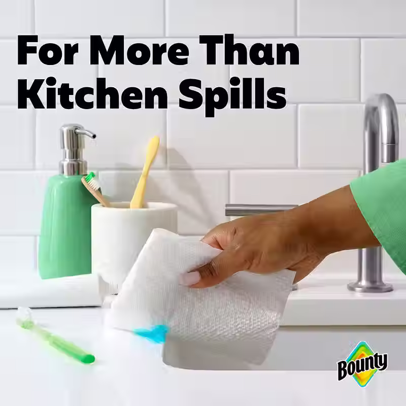 Bounty Paper Towels are 2x more absorbent, so you can clean up messes quicker and use less than the leading ordinary brand. Each sheet has a Durable Diamond Texture to tackle anything from everyday spills to tough projects throughout your home. A variety of pack and rolls sizes are available, and going bigger means you change the roll less often* to always have Bounty on hand. Buy in bulk! Choose from different sheet sizes based on what works best for your needs, including Select-A-Size and Full-Size. You can also change it up with Bounty's printed designs.