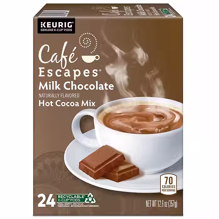 Stock the coffee cabinet with this Keurig K-Cup Cafe Escapes milk chocolate hot cocoa 24-pack for a sweet, soothing alternative to coffee or tea.