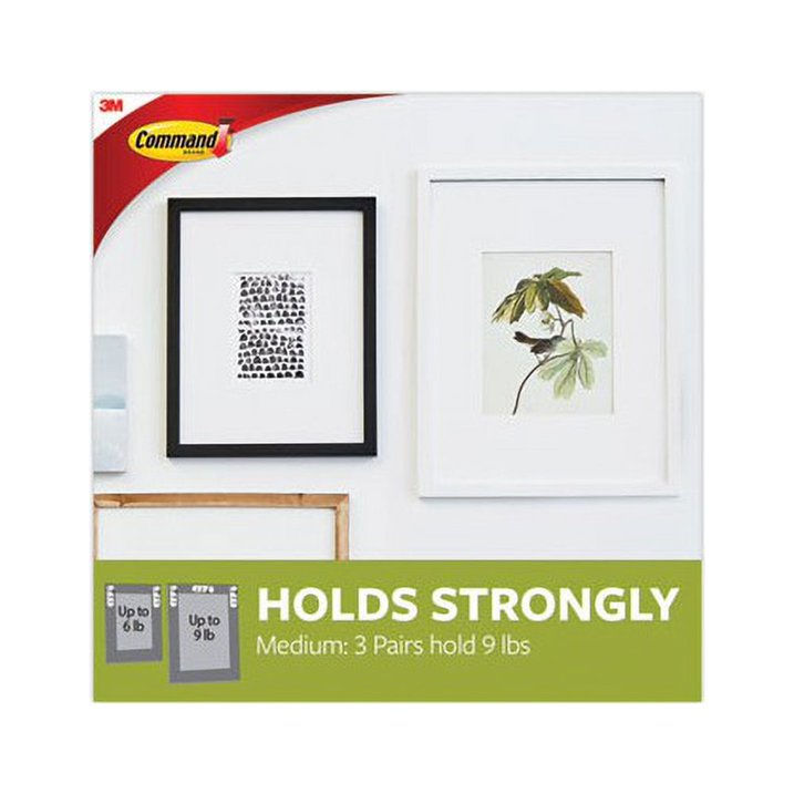 These picture hanging strips make decorating quick and easy. One click tells you when these strips are locked in and hold tight. Best of all, when you are ready to take down or move your pictures, they come off leaving no wall damage, cracked plaster or sticky residue. They work on a variety of surfaces including paint, wood, tile and more. WhiteCabinet PackIndividually wrapped packs of four strips. Holds: Up to 6 lb per pair Permanent/Removable/Repositionable: Removable Mounting Application: Command Adhesive Width: 0.75".
