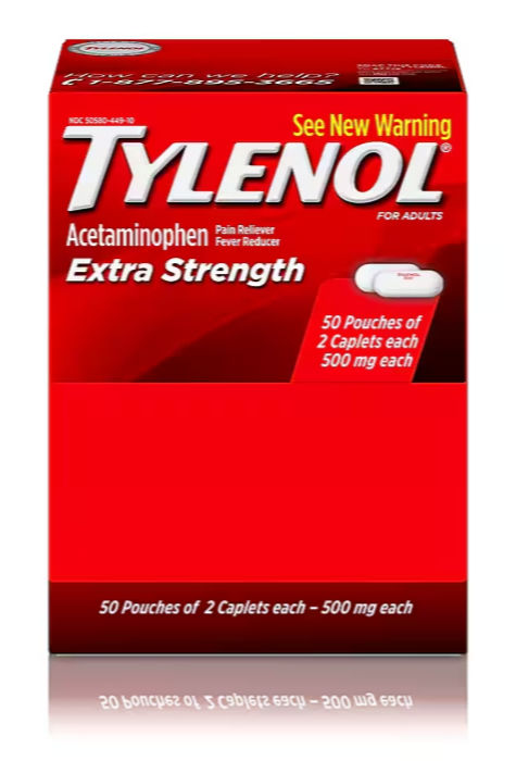 - 50-count, Pack of 2 of Tylenol Extra Strength Caplets with acetaminophen to provide temporary relief of minor aches and pains and help reduce fever